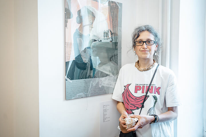 Яе рука замалёўвае тое, што адчувае сэрца: змененыя краявіды, зніклыя знаёмыя твары, тонкія дэталі жыцця ў пераходным стане. У сваіх працах яна ўвасабляе вытрымку і ціхі пошук месца, якое ўсё яшчэ адчуваецца домам — Беларусь.