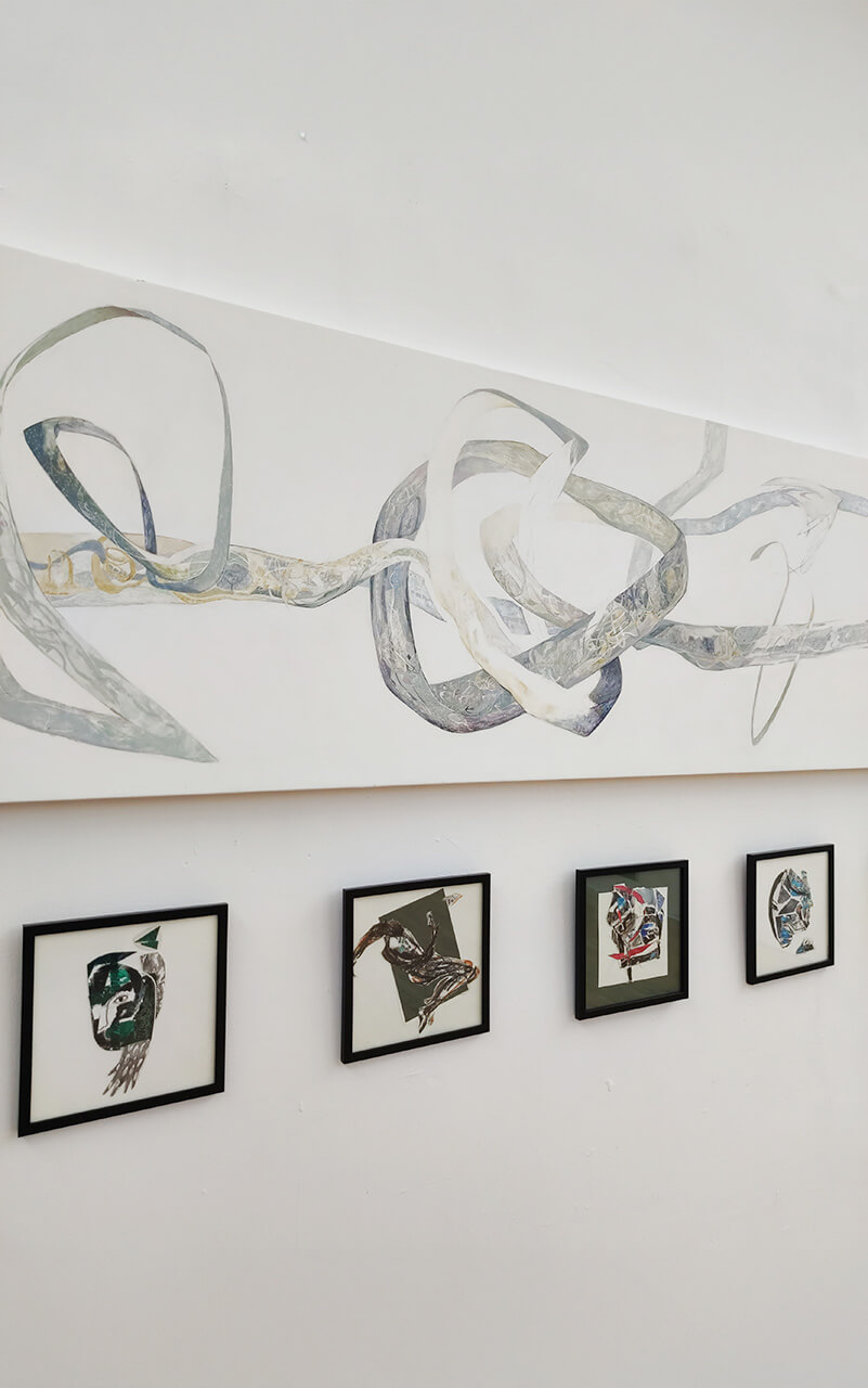 Акрылавыя фарбы на паперы, кардон, сілікон, шлагметал, лак.