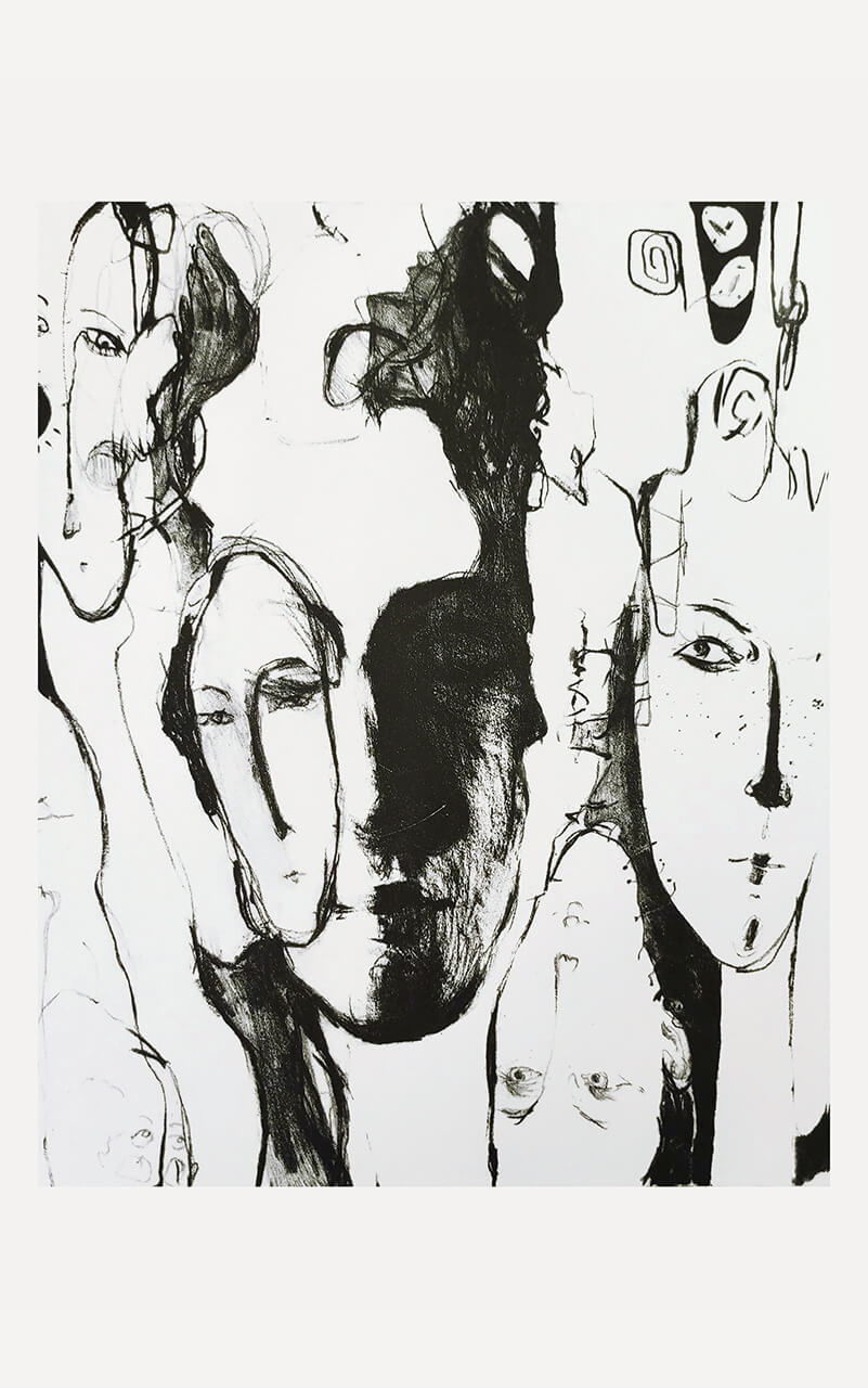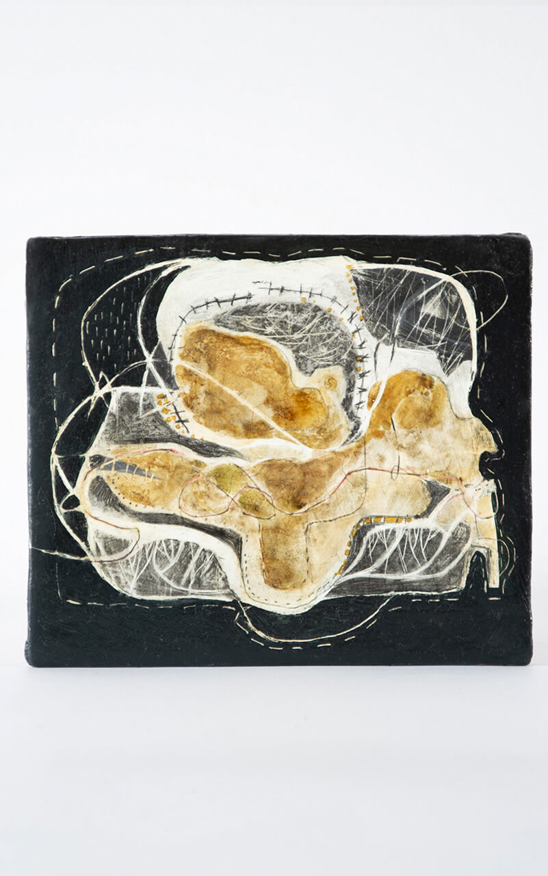 Драўнянапаходная пліта hande made, акрылавыя фарбы, сілікон, залаты пігмент, лак. Цыкл PEOPLE,